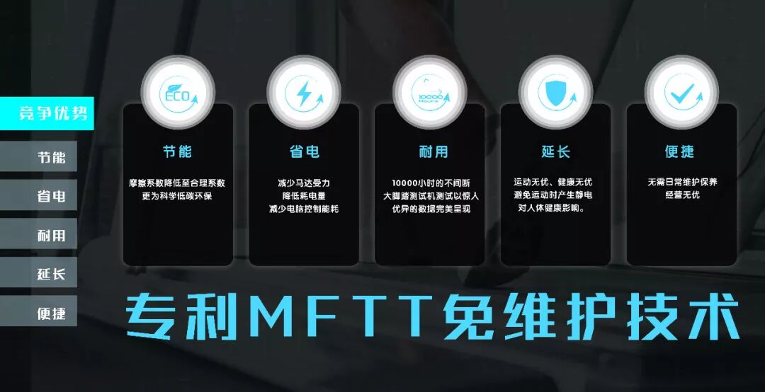 作為運(yùn)動(dòng)品牌技術(shù)領(lǐng)域的領(lǐng)跑員,AEON正倫於創(chuàng)新技術(shù)上始終堅(jiān)持投入大量心力。MFTT免維護(hù)技術(shù)可以說是AEON正倫的一項(xiàng)重要研發(fā)成果,節(jié)省開支、避免麻煩、耐用節(jié)、節(jié)電等優(yōu)勢,為跑步機(jī)市場帶來巨大變革。